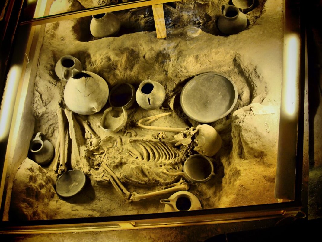 محوطه موزه عصر آهن تبریز مجموعهای از قبور متنوع و لایهلایه است که هرکدام سرنخهایی از زندگی انسانهای عصر آهن ارائه میدهند. یکی از برجستهترین ویژگیهای این محوطه، وجود نمونههایی از تدفین ثانویه است؛ یعنی اجسادی که ابتدا در جایی دیگر قرار داشتهاند و سپس برای دفن نهایی به این گورستان منتقل شدهاند. همین موضوع علت متلاشیشدن برخی اسکلتها را توضیح میدهد و نشان میدهد که این گورستان برای مردم آن زمان اهمیت آیینی خاصی داشته است.