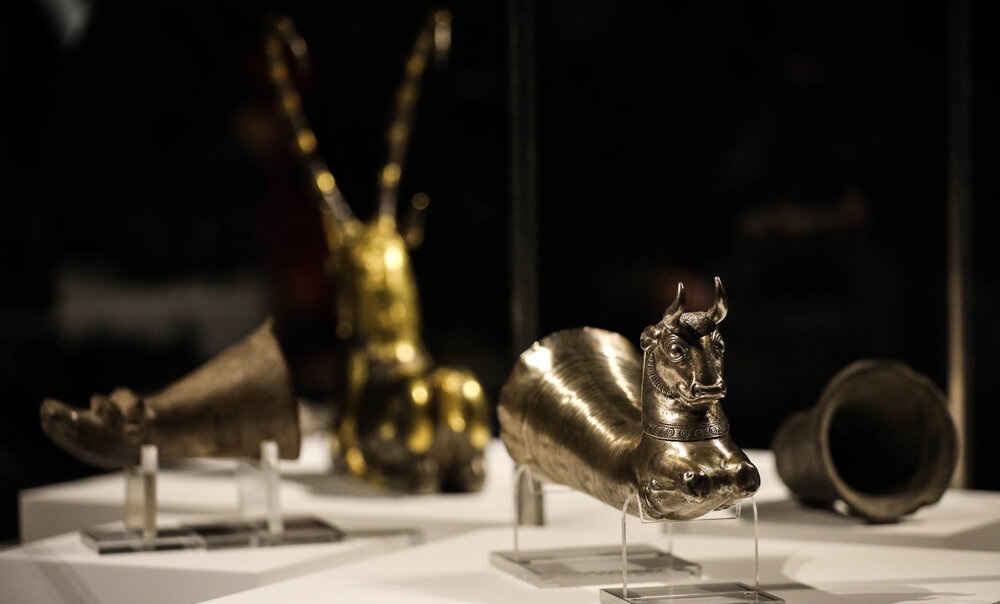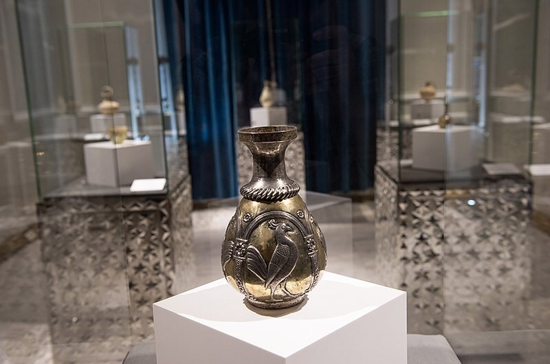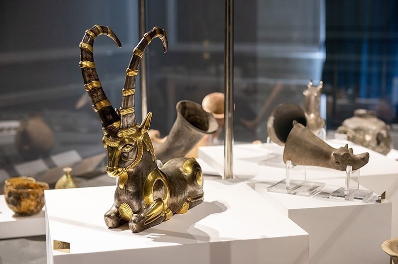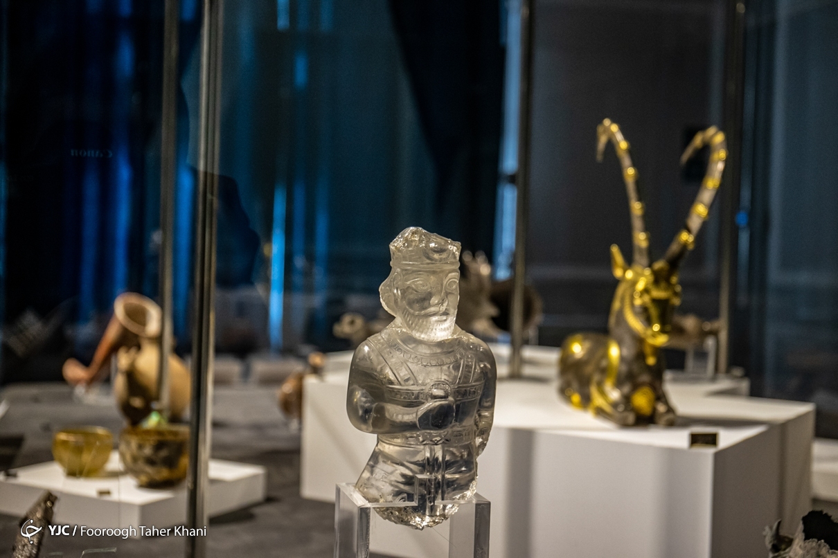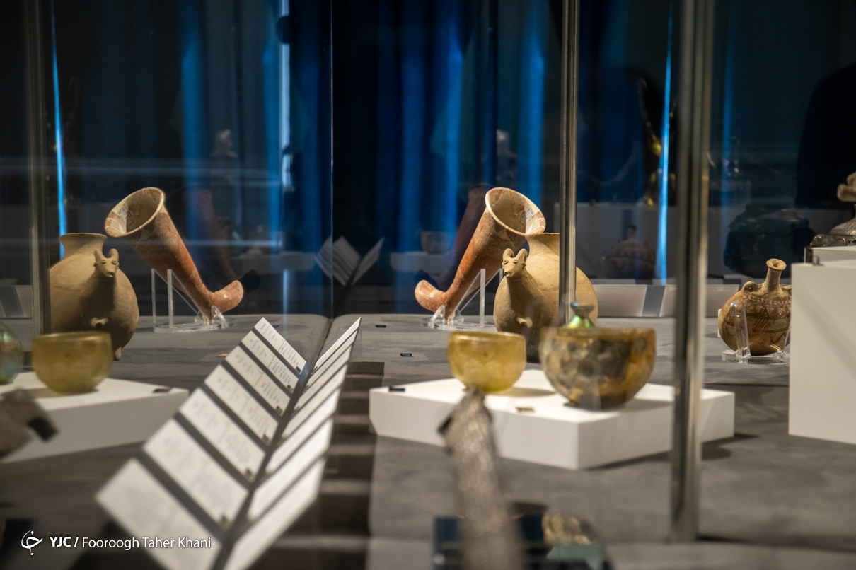 در تالار باستان یک، آثار شاخص دورههای هخامنشی، اشکانی و ساسانی ارائه میشود. ریتون هخامنشی با قدمت حدود ۲۵۰۰ سال، ظروف سفالی اشکانی، گردنبندهای سنگی و شیشهای و تندیس شیشهای پادشاه ساسانی از مهمترین اشیای این تالار هستند. این بخش، اوج هنر ایران پیش از اسلام را در قالب اشیای آیینی و کاربردی نشان میدهد.