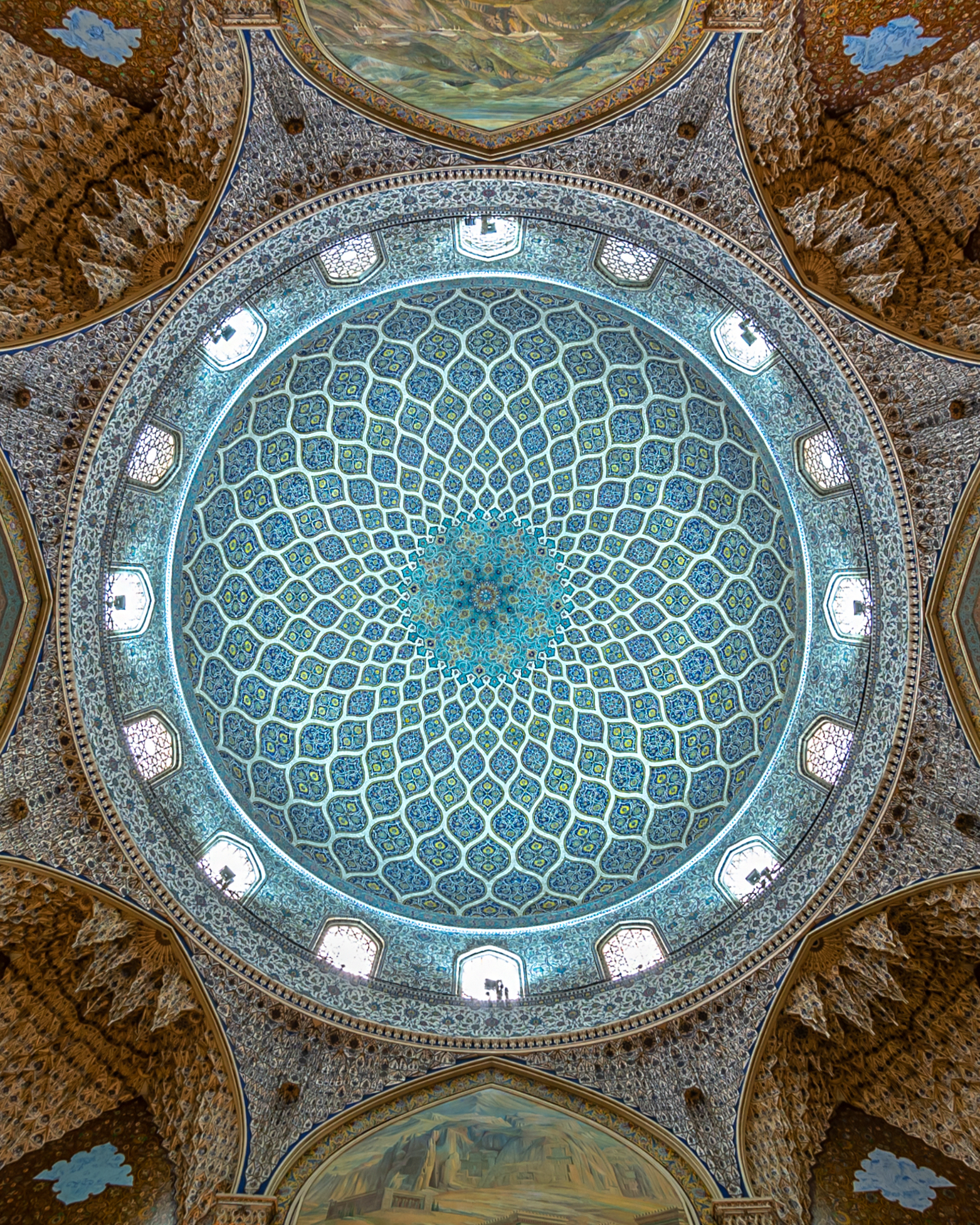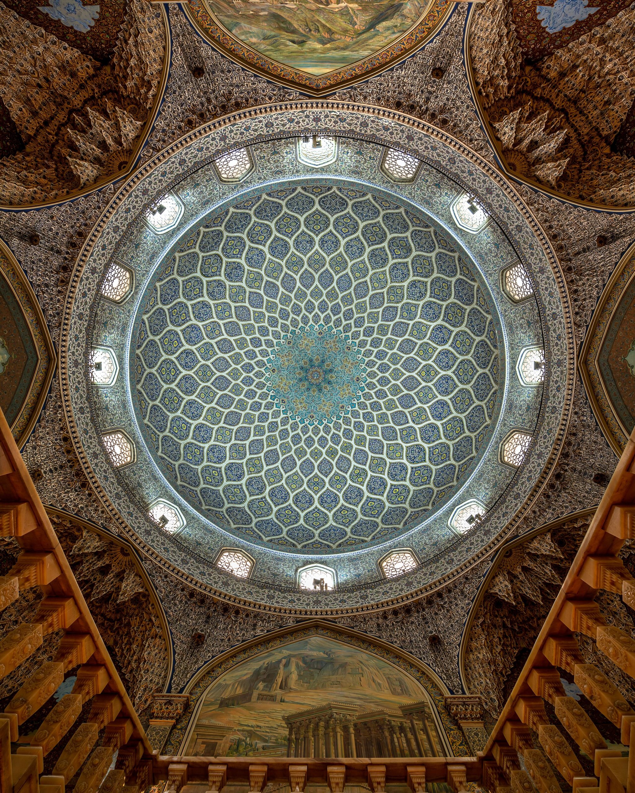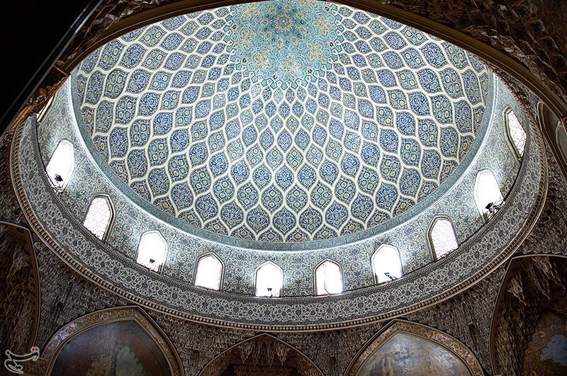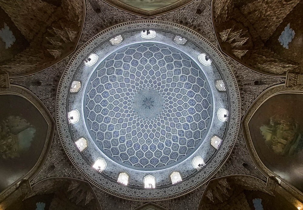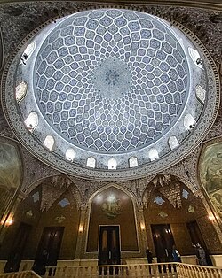 در بالای سرسرا، فضای گنبدیشکل قرار دارد که طراحی آن با الهام از گنبد مسجد شیخ لطفالله انجام شده است. تزیینات این بخش حاصل کار هنرمندانی چون حسین لرزاده، حسین کاشیتراش، اسماعیل خاکنگارمقدم و ابراهیم کاظمپور است. مقرنسهای گچی، کاشیکاری هفترنگ حاج محمود ارشنگار و طرحهای استاد حسین بهزاد از شاخصترین عناصر تزیینی این فضا هستند.