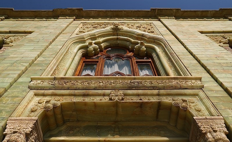 نامگذاری کاخ مرمر بهدلیل استفاده گسترده از سنگ مرمر سبزرنگ در نمای بیرونی عمارت انجام شده است؛ مرمرهایی که با نقوش گلوبته، طرحهای گیاهی و جانوری تزیین شدهاند. طراحی و اجرای این بنا بر عهده لئون تادوسیان، معمار ایرانیارمنی بود که در این پروژه از سبک معماری تلفیقی شرق و غرب استفاده کرد. در روند طراحی و ساخت، نقشهکشی به نام بوریس و استاد حاجاکبر کاچار نیز با تادوسیان همکاری داشتند.