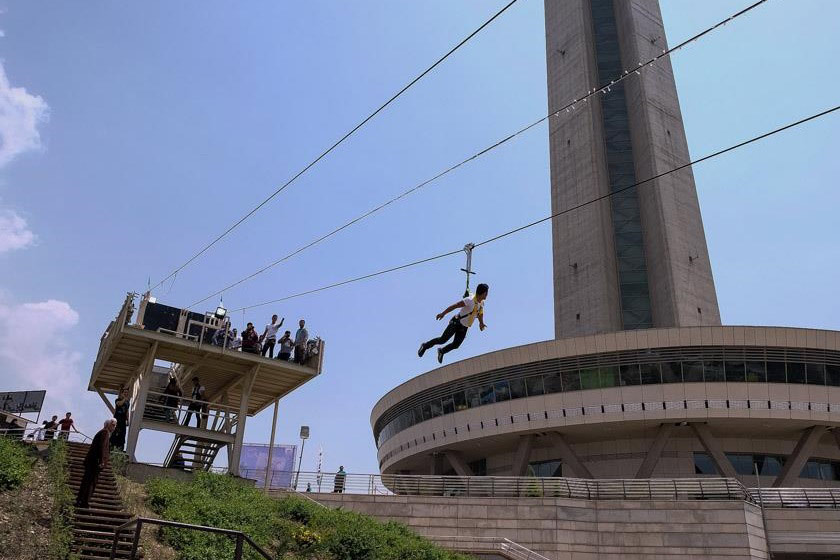 یکی از مرتفعترین تابهای دنیا در ارتفاع ۲۸۲ متری. تجربه تاب خوردن روی آسمان تهران، واقعاً منحصربهفرد است. - پرواز در آسمان (Sky Fly)